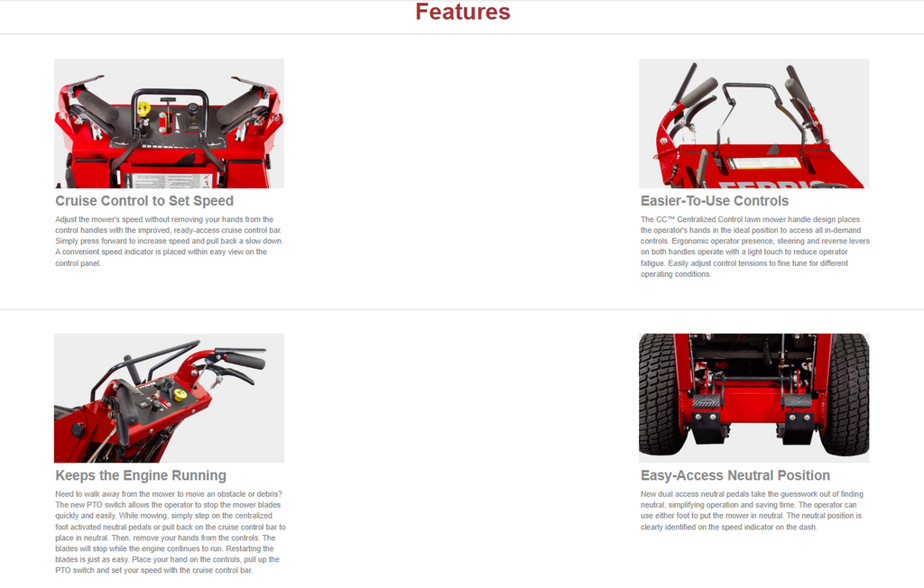 Operator presence, centralized foot activated neutral pedals, neutral start safety circuit/CC™ (Centralized Controls) or standard controls